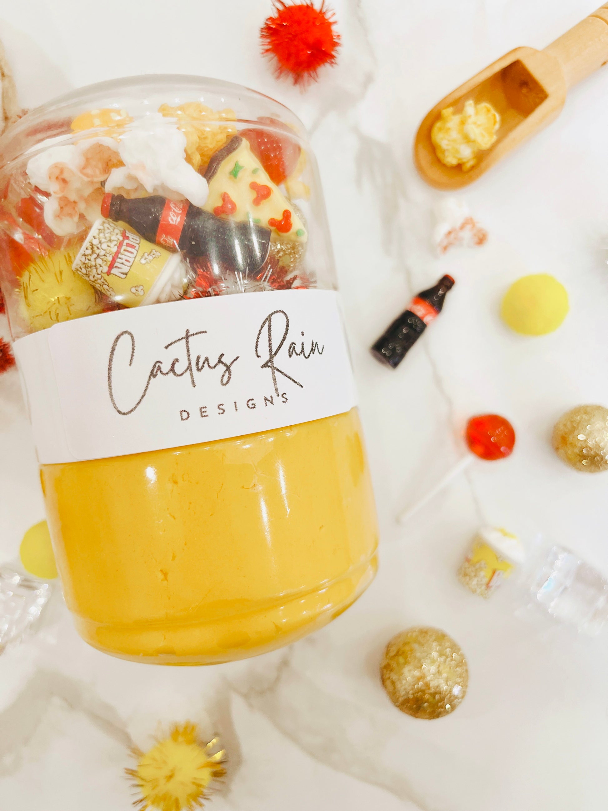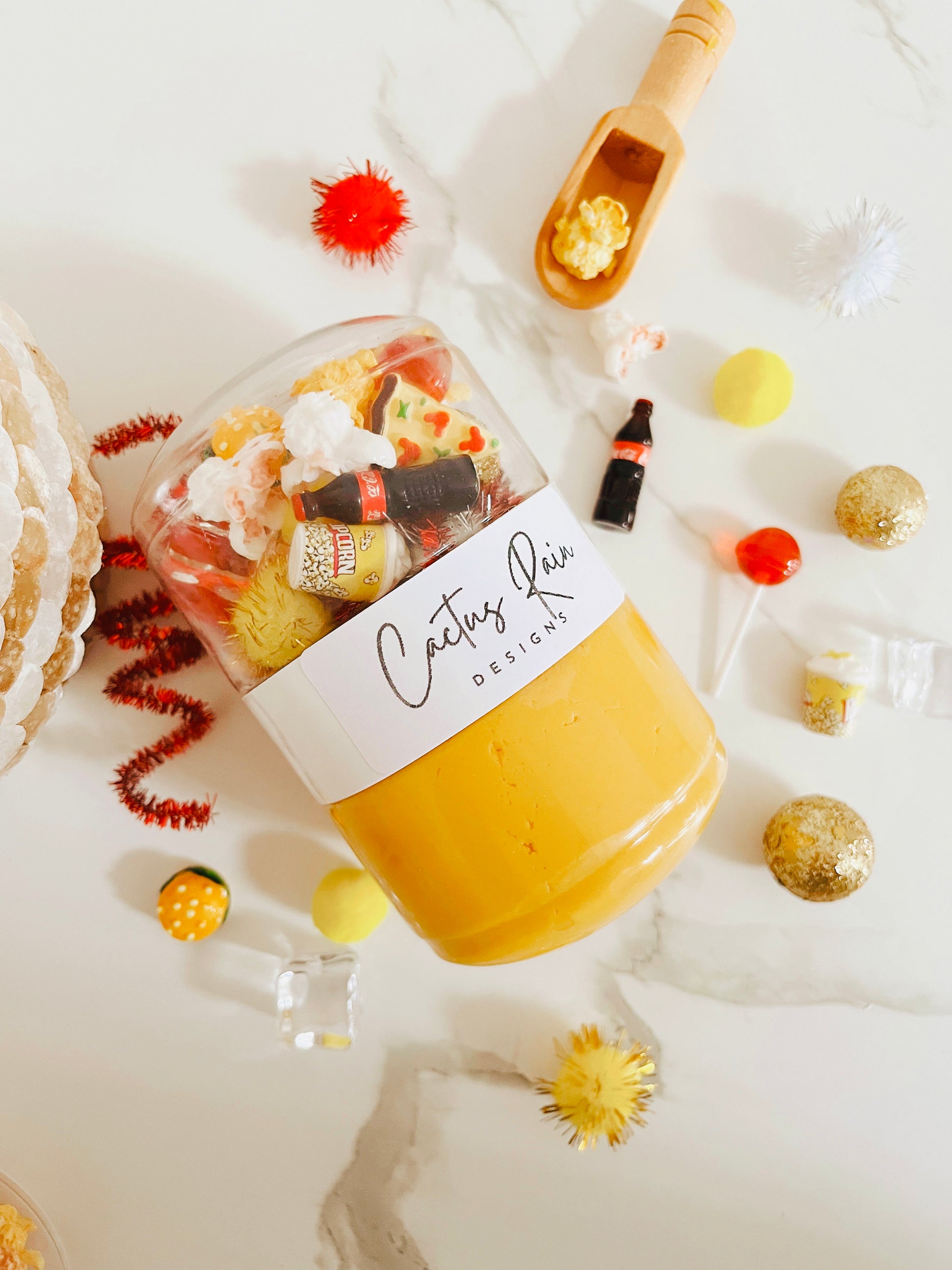 These super convenient sensory play dough jars are so fun for movie night and smells like caramel corn!
